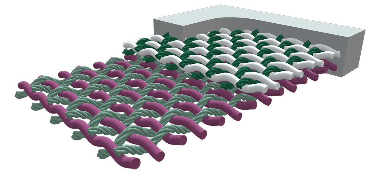 TriFlow™ 2 is the evolution of the first intrinsic 3-Layer Seamed base design in the industry. It is a Patented Hybrid Design utilizing a combination of a unique non-woven CD oriented base module inserted between a top and bottom woven base module.